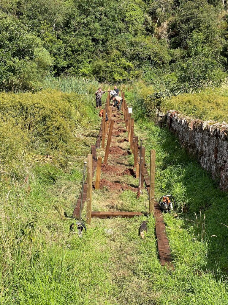 Work starts on the Spott Glen Boardwalk as part of the Core Footpath 40 renovation. A big thanks to Drew Ramsay and his team!!